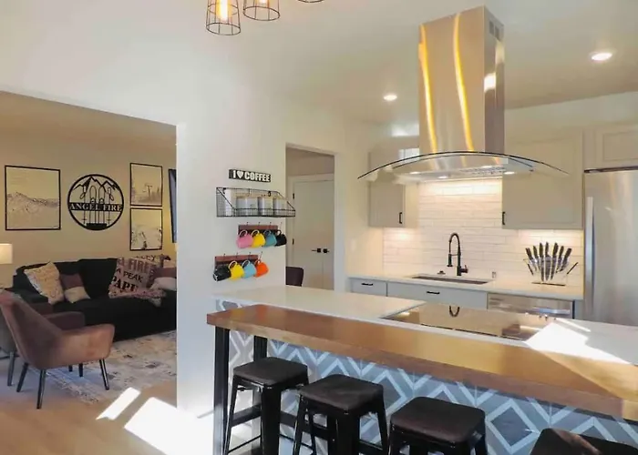 Located a mere 5 minutes on foot from the Angel Fire Resort, Modern Getaway Relax Bike Hike And Shred Villa Angel Fire includes a patio with views of the mountain. Located 2.4 km from Nordic Center, the Angel Fire holiday home features cycling.
